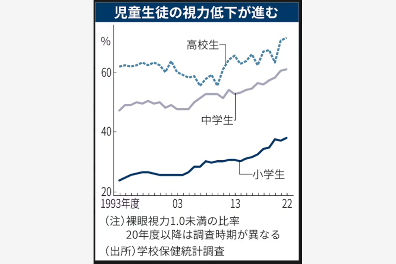 参照リンク:視力「1.0未満」の中学生6割 進む近視、スマホの影響も.日本経済新聞.