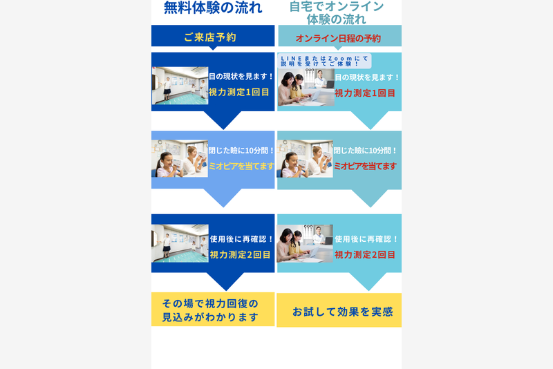 アイメディカルでは医療機器 超音波治療器ミオピアの無料回復体験を提供しています。早期発見と早期トレーニングが視力回復への近道です。